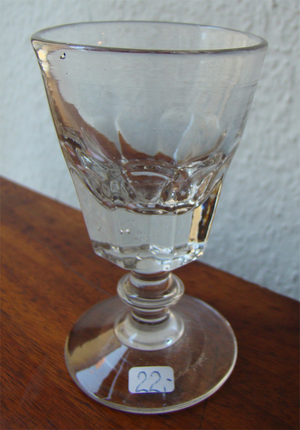 antikes Schnapsglas (mundgeblasen) mit ausgeschliffenem Abriss von ca. 1850-1900 ORIGINAL, alt / Größe : ca. 10,2cm hoch und Durchmesser oben ca. 5,8cm der Durchmesser vom Standfuß ca. 5,8cm Mit altersbedingten Gebrauchsspuren! Zustand siehe nachfolgende Bilder!