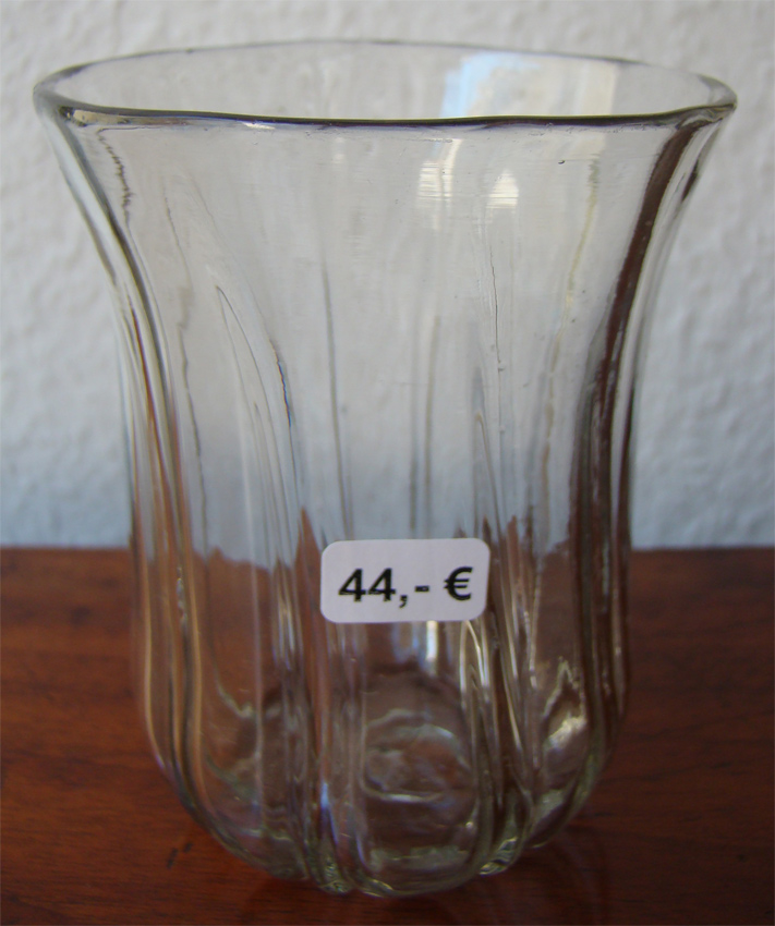 antikes Glas, Becherglas (mundgeblasen) mit Abriss von ca. 1850-1900 im Glas sind Luftblasen und Striemen ORIGINAL, alt / Größe : ca. 10,5cm hoch und Durchmesser oben ca. 8,2cm der Durchmesser vom Standfuß ca. 5,0cm Mit altersbedingten Gebrauchsspuren! Zustand siehe nachfolgende Bilder!