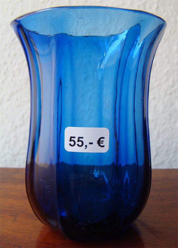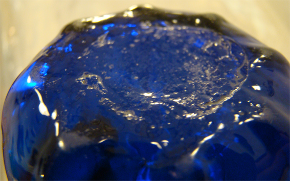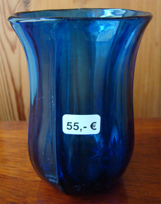 antikes farbiges blaues Glas (mundgeblasen) mit Abriss