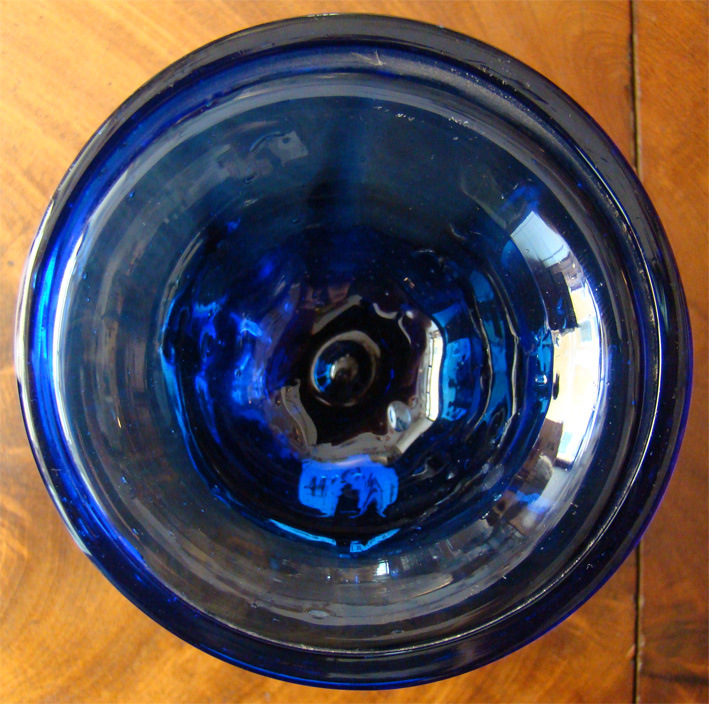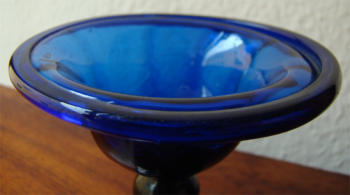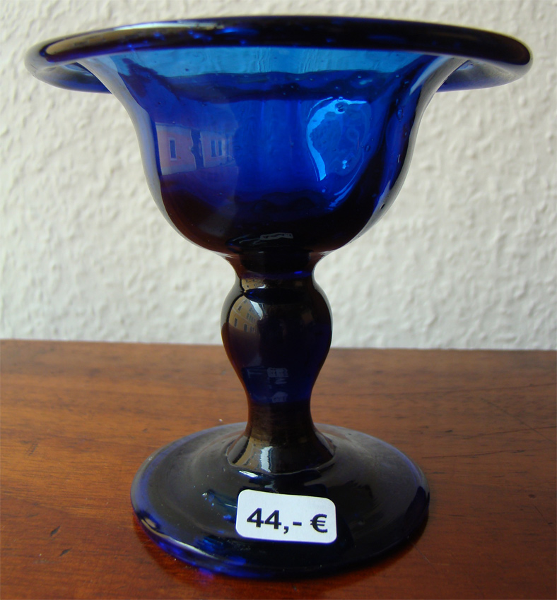 antike kleine farbige blaue Glasschale (mundgeblasen), Abriss und von ca. 1850-1900 mit nach oben umgeschlagenem Rand ORIGINAL, alt / Größe : ca. 9cm hoch und Durchmesser oben ca. 9,2cm der Durchmesser vom Standfuß ca. 6,1cm Mit altersbedingten Gebrauchsspuren! Zustand siehe nachfolgende Bilder!