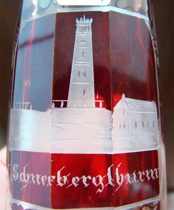 antikes Rotglas, geschliffen, Schneebergturm bei Eulau, Böhmen von ca. 1880-1920 ORIGINAL, alt / Größe : ca. 8,1cm hoch und Durchmesser unten ca. 5,2cm Mit altersbedingten Gebrauchsspuren! Zustand siehe nachfolgende Bilder! Am oberen Rand sind winzige Beschädigungen! ![]() ![]() Am oberen Rand sind winzige Beschädigungen! ![]() |