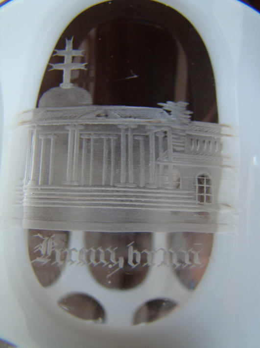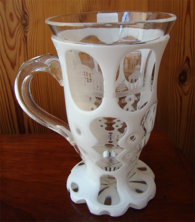 antikes Glas, Krug, Überfangglas (mundgeblasen), geschliffen, aus Marienbad, Böhmen