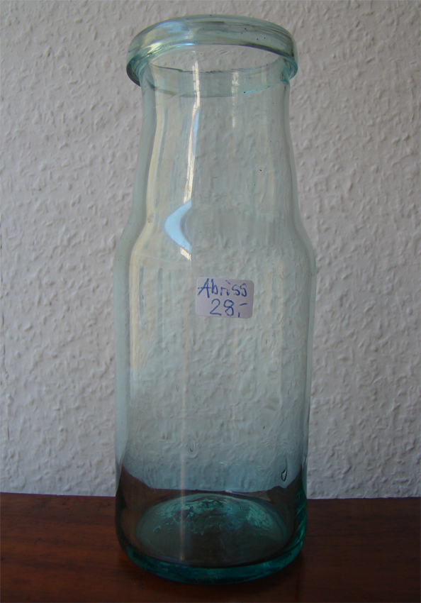 antike Milchflasche (mundgeblasen) mit Abriss von ca. 1800-1850 Mit nach unten umgeschlagenem Rand und vielen Lufteinschlüssen. ORIGINAL, alt / Größe : ca. 19cm hoch und Durchmesser ca. 7,3cm Mit altersbedingten Gebrauchsspuren! Zustand siehe nachfolgende Bilder! ![]() ![]() mit Abriss am Boden ![]() |