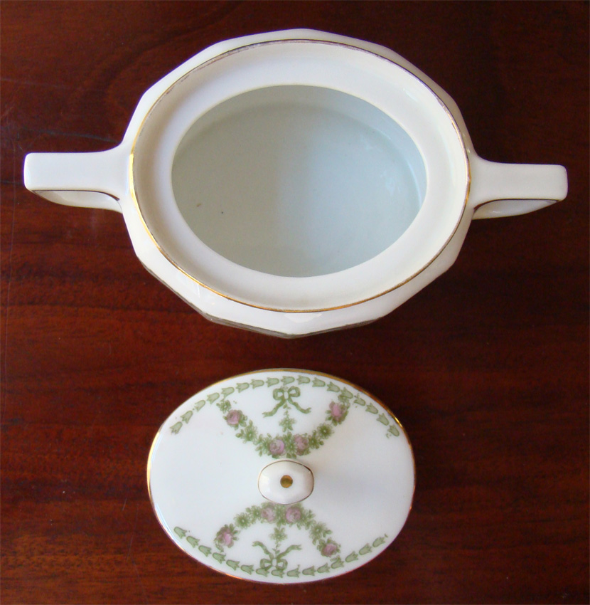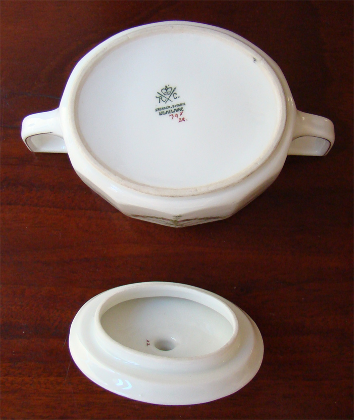 antike Porzellan Zuckerdose von 1901-1927 Marke am Boden von 1901-1927, Rosenthal & Co, Kronach, Oberfranken ORIGINAL, alt / Größe : ca. 16cm breit ca. 9cm tief und ca. 9,5cm hoch mit Deckel Mit altersbedingten Gebrauchsspuren! Zustand siehe nachfolgende Bilder! Goldrand teilweise etwas abgenutzt! ![]() ![]() ![]() ![]() |